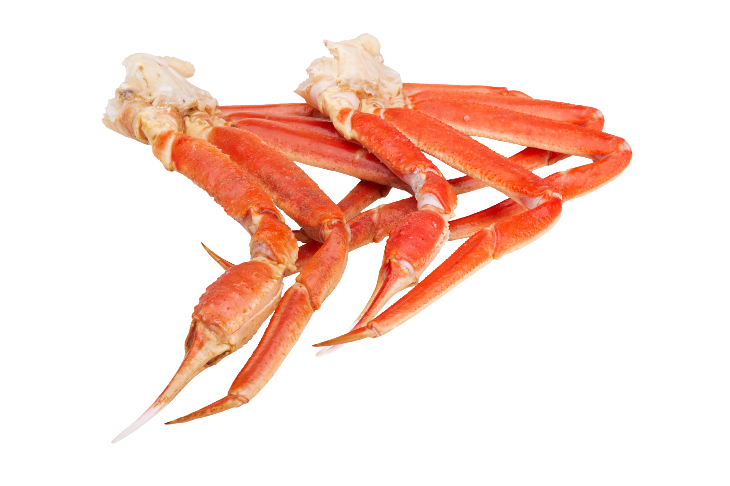 Diepgevroren poten van de snowcrab. Zoet, sappig krabvlees. Klaar voor bereiding.